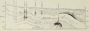 Drillers continued to find new oil reservoirs throughout the 20th century, with new discoveries still occurring in the 1980s. Most reservoirs occur in the Miocene-age Monterey Formation, with depths usually to 4,900 feet (1,500 m), although one discovery, the "PULV" Pool of 1979, was 8,700 feet (2,700 m) below ground surface. The only well developed at this depth, and the only well in the PULV pool, was abandoned a year after it was drilled.[2]