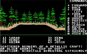 The world is presented as a labyrinth, utilizing a first person perspective interface similar to that employed by The Bard's Tale, where the gaming world is divided into a maze-like grid and the player's movement options are to move forward or backward, or turn ninety degrees left or right. The walls represent mountain ridges, cave stone, rows of trees or whatever obstruction might be expected in the terrain being explored.