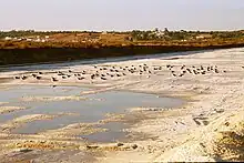 His industrial activities were related to evaporation-based salt exploitation. He was the owner of Unión Salinera; the company was dealing in all types of salt business, including crushed salt for industrial and commercial purposes and refined table salt for home use. It was based on licenses to exploit extensive salt ponds at the outskirts of Cádiz; one, named "La Tapa", was located in El Puerto de Santa María, others, named "San Félix", "San Miguel" and "Dolores", were located in Rio Arillo.[34] Martínez de Pinillos owned also salt installations on Rio Guadalete. Exact scale of the business is not clear, though it was significant at least on the Andalusian scale; Unión Salinera for years advertised in the local press and they operated own railway facilities, including an industrial spur along the Cádiz – Seville line.[35]