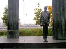 During the socialist era of Hungary, Károlyi was praised as the founder of the first Hungarian republic. Many streets and other public places were named after him, and even a few statues were erected in his honor. The most famous one, sculpted by Imre Varga, was installed in Budapest's Kossuth Lajos tér in 1975. After the fall of communism his statue was repeatedly covered with red paint by unknown persons.[35] At other times a wire was hung around his neck, a sign was hung on the wire with the inscription "I am responsible for Trianon". The statue was dismantled at dawn on 29 March 2012, as part of the redevelopment of Kossuth Square, and transported to a foundry in Kőbánya,[36] Finally Károlyi's statue was moved to Siófok at the residence of its creator. By the 21st century however, the view on him has become mixed at best. Many Hungarians blame him for the disintegration of Greater Hungary and for the establishment of the Hungarian Soviet Republic of 1919.[37] At the same time, throughout Hungary, most cities also renamed their own streets named after him, sometimes in a creative way. In Budapest for example the name of the prominent street in downtown, was changed from "Károlyi Mihály utca" to simply "Károlyi utca", removing the association with him.