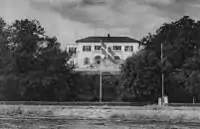 Mikkelgård is the former summer retreat of the composer Hakon Schmedes who named his house after the locality. It was built in 191516 to design by Povl Baumann who was influenced by the Arts & Crafts movement. It is a four-winged house built with exposed timber framing facing the central courtyard. The house is surrounded by moats and is connected to the mainland by a bridge. In 1990, it was converted into a restaurant. The former stables were renovated in 1997 and have room for 120 dining guests.[3]