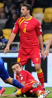 ![]() Jovanović standing over teammate Vladimir Volkov playing for Montenegro in 2012 | |||