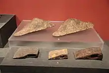 The dao, a single edged blade (saber), was separated into four categories during the Tang dynasty. These were the Ceremonial Dao, Defense Dao, Cross Dao, and Divided Dao. The Ceremonial Dao was a court item usually decorated with gold and silver. It was also known as the "Imperial Sword". The Defense Dao does not have any specifications but its name is self-explanatory. The Cross Dao was a waist weapon worn on the belt, hence its older name, the Belt Dao. It was often carried as a sidearm by crossbowmen.[30] The Divided Dao, also called a Long Dao (long saber), was a cross between a polearm and a saber. It consisted of a 91 cm blade fixed to a long 120 cm handle ending in an iron butt point, although exceptionally large weapons reaching 3 meters in length and weighing 10.2 kg have been mentioned.[31] Divided daos were wielded by elite Tang vanguard forces and used to spearhead attacks.[32]