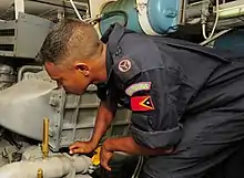 Brigadeiro-general Filomeno da Paixão, Vice Chief of Defence Force, aboard a visiting US warship.