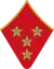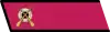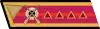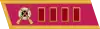 - Sleeve: One large star in gold embroidery, red piping, below a red coloured chevron in gold embroidery, surrounded by two gold laurel-twigs with red piping.