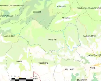 Minerve (French pronunciation: [minɛʁv] ; Occitan: Menèrba) is a commune in the Hérault department in the Occitanie region in southern France. It is the namesake of the Minervois wine region.