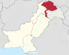 Pakistani-administered Kashmir, highlighted red, shown in relation to the rest of Pakistan[1][2]