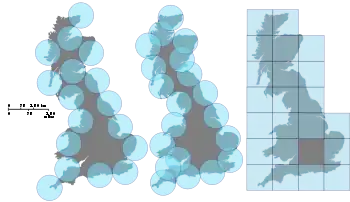 To calculate this dimension for a fractal , imagine this fractal lying on an evenly spaced grid and count how many boxes are required to cover the set. The box-counting dimension is calculated by seeing how this number changes as we make the grid finer by applying a box-counting algorithm.
