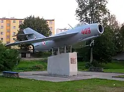 - Similarly to the one in Wołów, one of the fighter jets that Hermaszewski flew on is used as a monument in Miastko. It was gifted to the town by the cosmonaut in 1989 and unveiled on the 50th anniversary of the outbreak of World War II; the text on its plaque reads: "To the glory of Polish wings on the 50th anniversary of the outbreak of the Second World War – citizens of Miastko".[49]