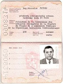 - ↑ Communist Miroslav Štěpán dies at Novinky.cz