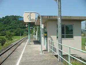 The station has one side platform serving a single bi-directional track. The station is unattended.