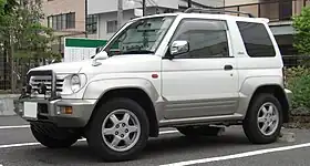 The Mitsubishi Pajero Junior is a mini SUV produced by Japanese automaker Mitsubishi Motors between October 1995 and June 1998 for the Japanese domestic market only. Based on a lengthened Minica platform, it was a larger version of the Mitsubishi Pajero Mini, a kei car. The biggest visual difference from the Pajero Mini is the wide fender trims and wider tyres, giving it a more purposeful appearance. The car is classified as a small size car according to Japanese government dimension regulations, so it pays lower taxes than the normal-size Pajero but higher taxes than the Pajero Mini.