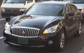 The Mitsubishi Proudia (Japanese: 三菱・プラウディア, Hepburn: Mitsubishi Puraudia) is a luxury sedan manufactured by Mitsubishi Motors, positioned below the flagship Dignity limousine (itself a lengthened version of the Proudia) in the company's range. Its name is a portmanteau derived from the English word "proud" and "diamond" (referring to the company's logo).[1] The first generation was produced from late 1999 to 2001, while the second generation (a rebadged second-generation Nissan Fuga) was produced from 2012 to 2016.