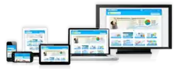 Websites re-designed for mobile screens, with sizes ranging from smartphones, netbooks, and tablets, to laptops, with a desktop screen shown for scale