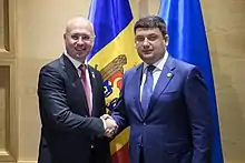 Moldovan–Ukrainian relations deteriorated under Moldovan President Igor Dodon due to his pro-Russian policies.[3] Despite this, the government maintained cordial relations with Kyiv, with Prime Minister of Moldova Pavel Filip holding a phone call with his Ukrainian counterpart Volodymyr Groysman a month after Dodon's election, during which he confirmed that Moldova stands for the preservation of the sovereignty of Ukraine.[4]