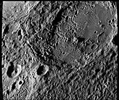 Molière is an impact crater on the planet Mercury, 139 kilometers in diameter. It is located south of the crater Rodin, southeast of the crater Abu Nuwas, and northeast of the crater Asvaghosa. The nearly circular rim of the crater is cut off into a flat edge on its southern and southwestern ends, and on its eastern side the rim is indented by a smaller crater. The crater is named for the 17th-century French dramatist and satirist Molière. The name was approved by the International Astronomical Union in 1976.[1][2]