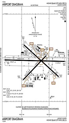 - ↑ Jennifer DeWitt (November 6, 2011). "Runway project nears completion". Quad-City Times. Retrieved June 23, 2012.