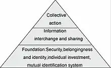Moments mainly consolidates strong ties and is supplemented with weak ties, and it functions in three hierarchies of a pyramid structure, from bottom to top.[6]