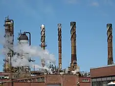 ![]() View of the Distillation of crude oil unit (now defunct) from the Sherbrooke East street | |