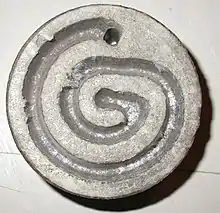 The moo box consists of a block and a bellows. The bellows is sealed to the bottom of the box and to the block. The block is heavy and perforated, and used to actuate the bellows, producing the sound.