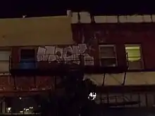 Monack began as a tagger targeting the South Side and Shadyside neighborhoods, but after his tags were abated, he began placing his tags in hard to reach places, including tall bridges and highway overpasses.[1] Monack was known to use the monikers "Mook" as well as "human hater".[2] He was a part of a graffiti crew that called themselves the "Value Krew" or VK.[3] The name means "knucklehead or idiot".[1] He was an active graffiti writer in Pittsburgh from 1997 to early 2000s. He drew the ire of the then-Pittsburgh Mayor Thomas J. Murphy, Jr., who had tried to provide an outlet for individuals interested in graffiti to use the walls along the Eliza Furnace trail.[1] He has etched "Mook" onto a Department of Public Works "Graffiti Busters" truck that was tasked with cleaning up graffiti.[1] At one point, merchants from the South Side, tired of having their businesses targeted confronted Monack. He tagged "So you want to get tough?" on the Birmingham Bridge[1] in response. Monack became known around the community for vandalizing previously unheard of places.[1] According to Pittsburgh officials, "He's going into areas no one's gone before."[1] He became known among law enforcement across Pennsylvania.[4] After the media coverage of Monack's "Mook" tagging in the Pittsburgh area, it is possible that multiple copycats have applied graffiti using the moniker "Mook".[1] As Monack received more coverage for his daredevil mischief, handful of letters have been sent to the newspaper editors from opponents as well as supporters.[5][6][7]
