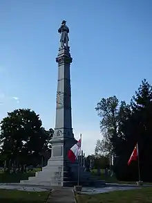 After the American Civil War, "the Ladies Memorial Society of Nashville with surviving Confederate veterans such as William B. Bate, Daniel Carter, General Benjamin Cheatham, and Thomas Harding purchased 26,588 square feet in the center of Mount Olivet and established Confederate Circle" for the interment of Confederate dead.[1] It was used for the interment of Confederate soldiers who had died on nearby battlegrounds and as a memorial to their sacrifice.[1] Women organized such memorial associations and raised money for interment of Confederate soldiers in major cities across the South and areas where there were concentrations of bodies.[3] The memorial association arranged for burials of about 1,500 soldiers at Confederate Circle.[1] They also built an obelisk.[1]