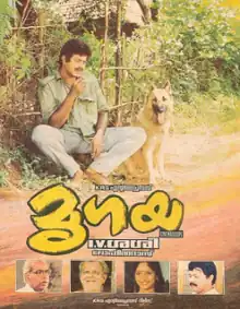Mrugaya (English: The Hunt) is a 1989 Malayalam drama film written by A. K. Lohithadas and directed by I. V. Sasi. The film stars Mammootty and Sunitha in the lead role, with Thilakan, Jagathy Sreekumar, Lalu Alex and Urvashi in supporting roles. It tells the story of Varunni (Mammootty), the uncultured and drunkard hunter who arrives in the village to kill a man-eating leopard. The film won two Kerala State Film Awards.[1] The leopard, used in a number of scenes in the film, was lent by animal trainer Govindarajan Naidu. Sasi had said that, the climax fight scene with leopard was done by Mammootty without dupes.[2]