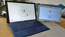 A second display or second displays is a common term describing the multi-monitor setup with just one additional monitor attached. Today it is particularly common to have one workstation with two monitors connected where the second monitor is referred to as the second display. Many tablets will serve as a second display connected to a laptop.[22] Many modern shops use cash registers with two screens, one facing the cashier and a second display facing the shopper.