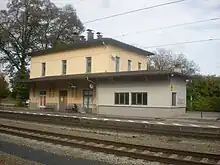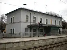 Aßling (Oberbay) station was opened on 15 October 1871 with the line. It has three tracks, but only two platform tracks as the third track serves as a passing track. The entrance building is still preserved and is located next to the main platform. The opposite side platform is connected by an underpass to the main platform. The Aßling railway disaster, which killed at least 102 people, occurred on 16 July 1945 near the station.