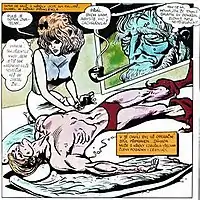 Kája Saudek met Macourek in 1960, through Olga Schoberová, a young shopgirl in a Prague's ironmongery.[3] Their artistic collaboration began in 1966, and was initially focused on film. Saudek created special effects for the film Kdo chce zabít Jessii? (Who Wants to Kill Jessie?); Macourek was a co-author of the screenplay.[4][5] Following that, both artists decided to work also in the comics genre. The cycle about the adventures of a beautiful doctor Muriel was intended to have twelve parts; however, only two parts have been created.