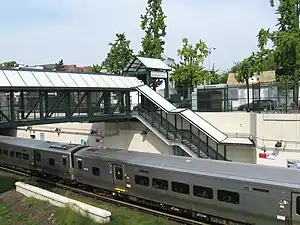 ![]() A westbound train at the station in 2008 | |||||||||||