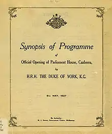 - ↑ Rhodes, Campbell (17 October 2011). "The King George V memorial". Museum of Australian Democracy. Archived from the original on 16 March 2017. Retrieved 19 March 2017.