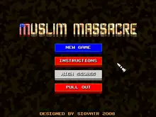 Muslim Massacre: The Game of Modern Religious Genocide is a controversial 2008 amateur video game by former Something Awful forum member Eric Vaughn under the screen name "Sigvatr". It is a top-down shoot 'em up video game. The aim of the game is to kill all the Muslims that appear on the screen – in the words of its creator, "take control of the American hero and wipe out the Muslim race with an arsenal of the world's most destructive weapons."[1]