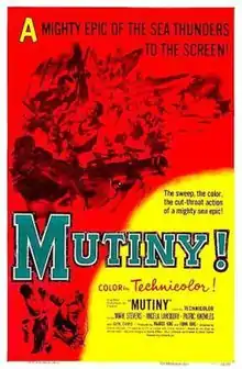 Mutiny is a 1952 American Technicolor adventure film directed by Edward Dmytryk and starring Mark Stevens, Angela Lansbury and Patric Knowles. The picture was produced by the King Brothers Productions and based on a story by Hollister Noble; the two parties had previously collaborated on Drums in the Deep South.