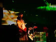One of the most recognisable aspects of My Bloody Valentine's music is Shields' guitar sound, which "use[s] texture more than technique to create vivid soundscapes."[89] During the late 1980s, Shields began customising the tremolo systems for his Fender Jaguars and Jazzmasters; extending the tremolo arm and loosening it considerably, to allow him to manipulate the arm while strumming chords,[89] which resulted in excessive pitch bending. Shields used a number of alternate and open tunings[14] that together with his tremolo manipulation achieved "a strange warping effect that makes the music wander in and out of focus", according to Rolling Stone.[90] Shields' most notable effect is reverse digital reverb, sourced from an Alesis Midiverb II or Yamaha SPX90 effects unit. Together with the tremolo manipulation and distortion, he created a technique known as "glide guitar".[91] Shields effects rig, which is composed largely of distortion, graphic equalizers and tone controls,[92] consists of at least 30 effects pedals[58] and is connected to a large number of amplifiers, which are often set to maximum volume to increase sustain. During live performances, in the closing song "You Made Me Realise", My Bloody Valentine perform an interlude of noise, which can last for half an hour and often reaches 130 dB.[93] Shields later remarked "it was so loud it was like sensory deprivation. We just liked the fact that we could see a change in the audience at a certain point."[35]