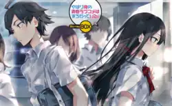| Shizuka scolds Hachiman for arriving at the very end of after-school classes. He then makes his way to a local cafe and runs into Yui, Yukino and Saika, and they are joined by Komachi and her friend Taishi Kawasaki. Taishi explains his concern over the late-night excursions of his sister Saki Kawasaki and the Service Club resolve to get to the bottom of the matter. The next day, the club employ various schemes of approaching Saki which all end up in failure. With Komachi's help however, the Service Club learn that Saki works nights at a cafe and eventually track her down to a bar at the top of a high-class hotel in Chiba. The Service Club then makes an exit after tensions flare between Saki and Yukino when they discover that the former had deceived the hotel management about her age to obtain employment. Saki then meets with the group the following morning and they learn that she had been saving up for college. However Komachi points out that she should not have made Taishi worry and Hachiman proposes that she apply for a scholarship instead. Afterwards Komachi shocks Hachiman with the revelation that Yui was the owner of the dog he had saved in the car accident. Believing that Yui was only friendly to him out of guilt, Hachiman ends their acquaintanceship during the field-trip. | |||||||
