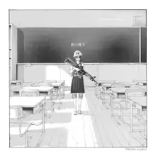 "My War" is Shinsei Kamattechan's fifteenth single and sixth as a limited release, following "Mainichi ga News" (2019). It was used as the opening theme for the fourth season of the Attack on Titan anime series. It is the second song used in the anime after "Yūgure no Tori" (2017). Like "Yūgure no Tori", the cover of "My War" was drawn by Attack on Titan creator, Hajime Isayama.[1] It features a girl, probably Gabi Braun, an Attack on Titan character, holding a rifle, dressed in school clothes and standing in the middle of a classroom.[2] In an interview with the Natalie website, Isayama said, "as a loyal fan of Shinsei Kamattechan, I am very happy to see the opening song composed by them."[3]