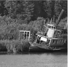 Myrtle, small vessel on lett, abandoned, circa 1941. On right is Telegraph, also abandoned.