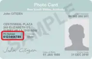 ![]() The front of a NSW Photo Card with highlighted photo card number | |