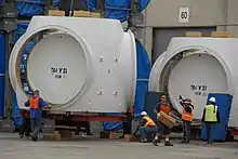 200-ton wind turbine rotor hubs that will be installed at the forward end of the nacelles.