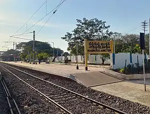 Historically, Nadikudi was a metre-gauge station.[3] Trains which travelled from Guntur to Macherla used to pass through Nadikudi. Later, Guntur–Macherla section, Tenali–Macherla section was converted from metre gauge to broad gauge and a new line was laid from Bibinagar near Hyderabad to Nadikudi, thus making Nadikudi a junction.