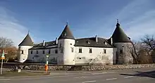 By the early 14th century, the Nagymartonis' lands were constantly threatened by two neighboring powerful oligarchic powers, Matthew Csák and the Kőszegi family. Initially, Paul (I) and Lawrence – possibly along with their aforementioned cousins – were forced to join the Kőszegis' familia.[22] When Charles I launched a campaign against the Kőszegis in Transdanubia and Slavonia in the first half of 1316, the Nagymartonis took an oath of allegiance to the king. As a result, the Kőszegis pillaged and looted their lands, while Andrew Kőszegi besieged and seized the castle of Kabold.[22] When Andrew Kőszegi attacked the towns of Sopron and Győr, which refused to acknowledge his supremacy, in the winter of 1317, the burghers successfully repelled the offense with the assistance of the troops of Paul and Lawrence. However, around the same time, Peter III Csák pillaged and destroyed their castle of Bajót in Esztergom County, which was never rebuilt.[29] For their loyalty and bravery, Paul and Lawrence regained the castle of Kabold by Charles in 1319, who seized the fort from the Kőszegis in his military campaign, while the Csáks abandoned their claims over the fortress as a compensation for the loss of Bajót.[23] Around the same time, the brothers built the first known castle of Forchtenstein (Hungarian: Fraknó).[29] The fortress became the family's new household, which, therefore adopted the Fraknói surname by the mid-14th century.[30]