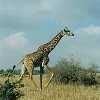 The park has a large and diverse wildlife population.[3] Species found in the park include lion, leopard, African buffalo, black rhinoceros, giraffe, hippopotamus, spotted hyena, blue wildebeest, plains zebra, cheetah, Thomson's gazelle, Grant's gazelle, common eland, impala, hartebeest, waterbuck, common warthog, olive baboon, black-backed jackal, common ostrich, and Nile crocodile.[10][12]
