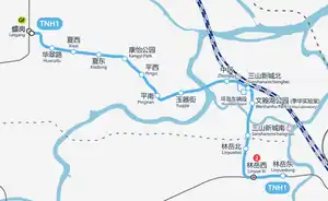 Nanhai Tram Line 1 (Chinese: 南海有轨电车1号线) is a light rail line in Nanhai District, Foshan. Construction started in January 2014.[3] The section from Leigang to Sanshan­xinchengbei opened on August 18, 2021.[4]
