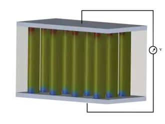 A pyroelectric nanogenerator is an energy-harvesting device that converts external thermal energy into electrical energy by using nano-structured pyroelectric materials. Usually, harvesting thermoelectric energy mainly relies on the Seebeck effect, which utilizes a temperature difference between two ends of the device to drive the diffusion of charge carriers.[66] However, in an environment where the temperature is spatially uniform without a gradient, such as in the outdoors, the Seebeck effect cannot be used to harvest thermal energy from a time-dependent temperature fluctuation. In this case, the pyroelectric effect has to be the choice, which is about the spontaneous polarization in certain anisotropic solids as a result of temperature fluctuation.[67] The first pyroelectric nanogenerator was introduced by Prof. Zhong Lin Wang at the Georgia Institute of Technology in 2012.[68] By harvesting the waste heat energy, this new type of nanogenerator has potential applications such as wireless sensors, temperature imaging, medical diagnostics, and personal electronics.