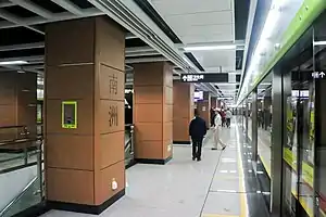 Nanzhou Station (Chinese: 南洲站; Jyutping: naam4 zau1 zaam6; Cantonese Yale: Nàahmjāu Jaahm), formerly Nanzhou Coach Station (南洲客运站; 南洲客運站; naam4 zau1 haak3 wan6 zaam6; Nàahmjāu Haak'wahnjaahm)[1] during its planning stages, is an interchange station between Line 2 on the Guangzhou Metro and the Guangfo Line.[2]