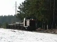 The Tver plant of building materials No.2 located near the town of Tver. The first section of the 3 kilometres (1.9 mi) long railway was built in 1951.[1] The main task of the narrow-gauge railway is the transportation of sand from the quarry to the KSM-2 factory. It runs on a daily basis, the speed of the train is 35–40 km/h (22–25 mph), the total length of the railway is 9 kilometres (5.6 mi).
