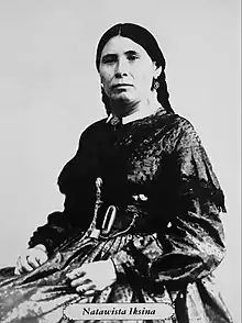 Natawista Iksina (born c. 1825, Alberta, Canada – died March 1893, Stand Off, Alberta, Canada), also spelled Natawista Iksana, Natoyist-Siksina', or Natúyi-tsíxina, was a Kainah interpreter and diplomat.[1] Her father, Two Suns, was a Kainah leader. Her name was alternatively translated "Medicine Snake Woman" [2] or "Holy Snake."[3]