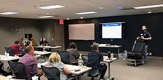 Students attend a child passenger safety training class.