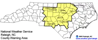 NWS Raleigh Operates 8 NOAA Weather Radio transmitters throughout central North Carolina.[1]